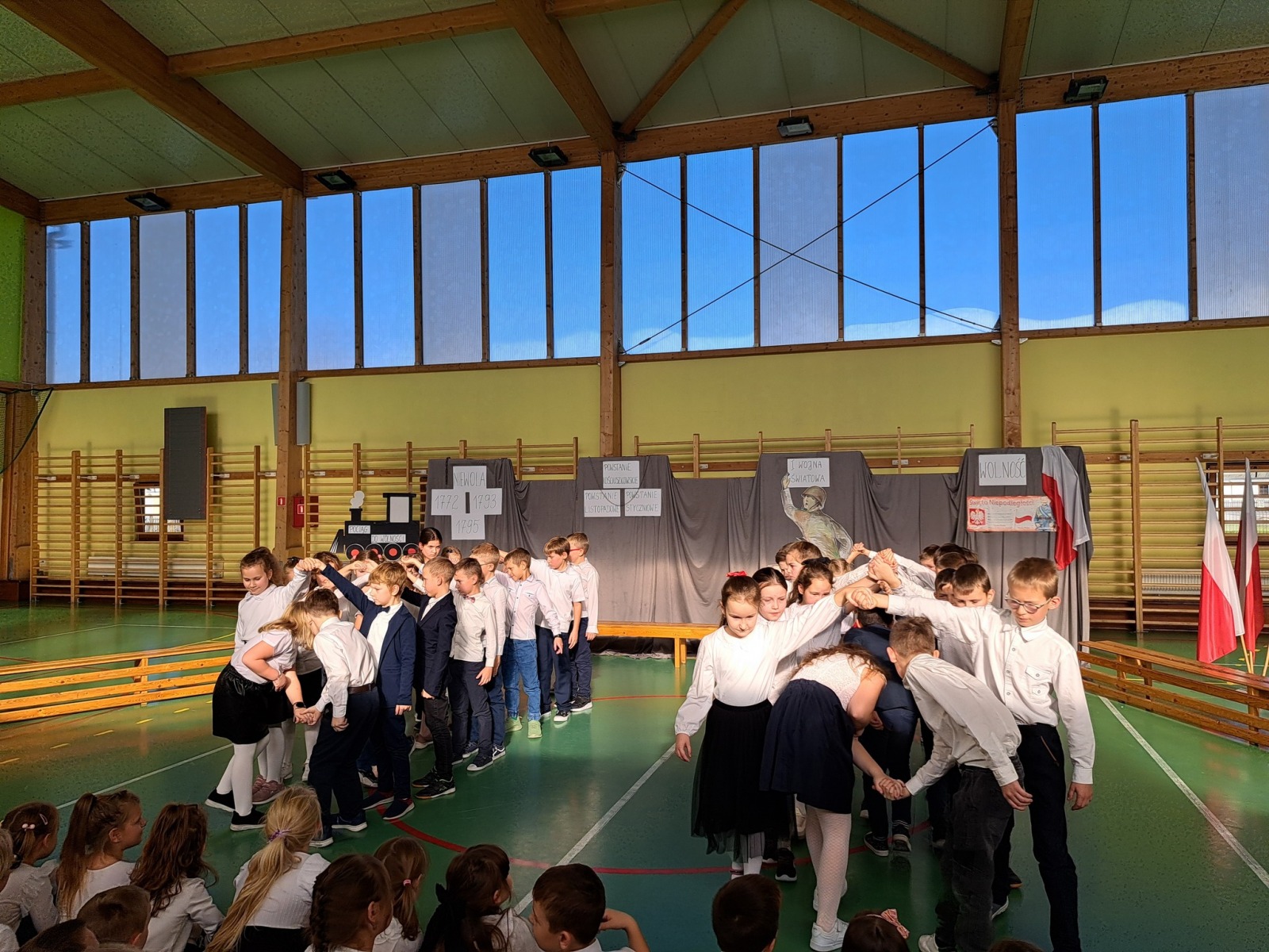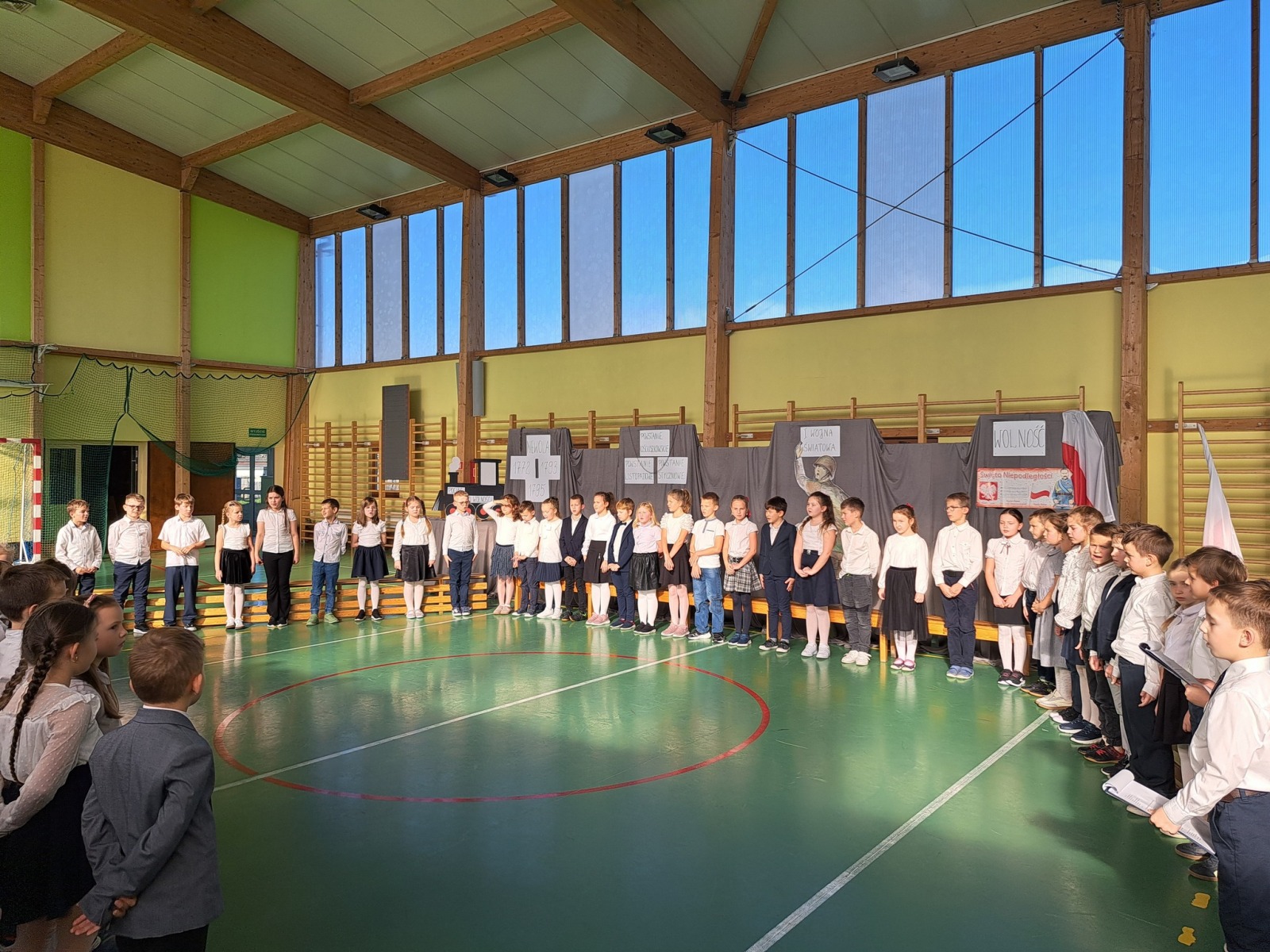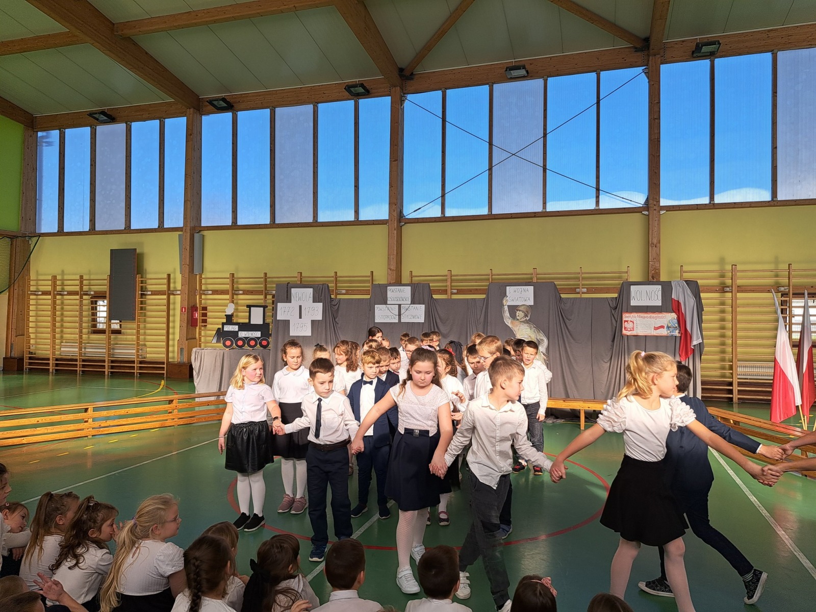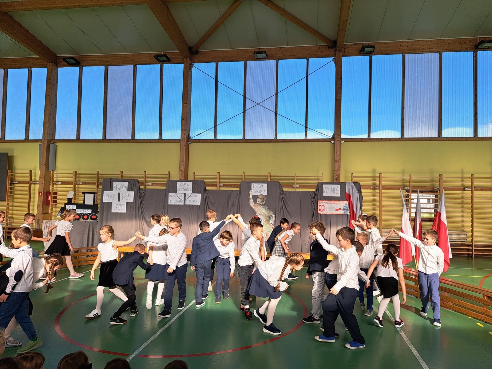 Po odśpiewaniu hymnu uczniowie klasy 2a i 2b przedstawili historię naszej Ojczyzny: od zaborów poprzez walki o odzyskanie niepodległości do wolnej Polski.