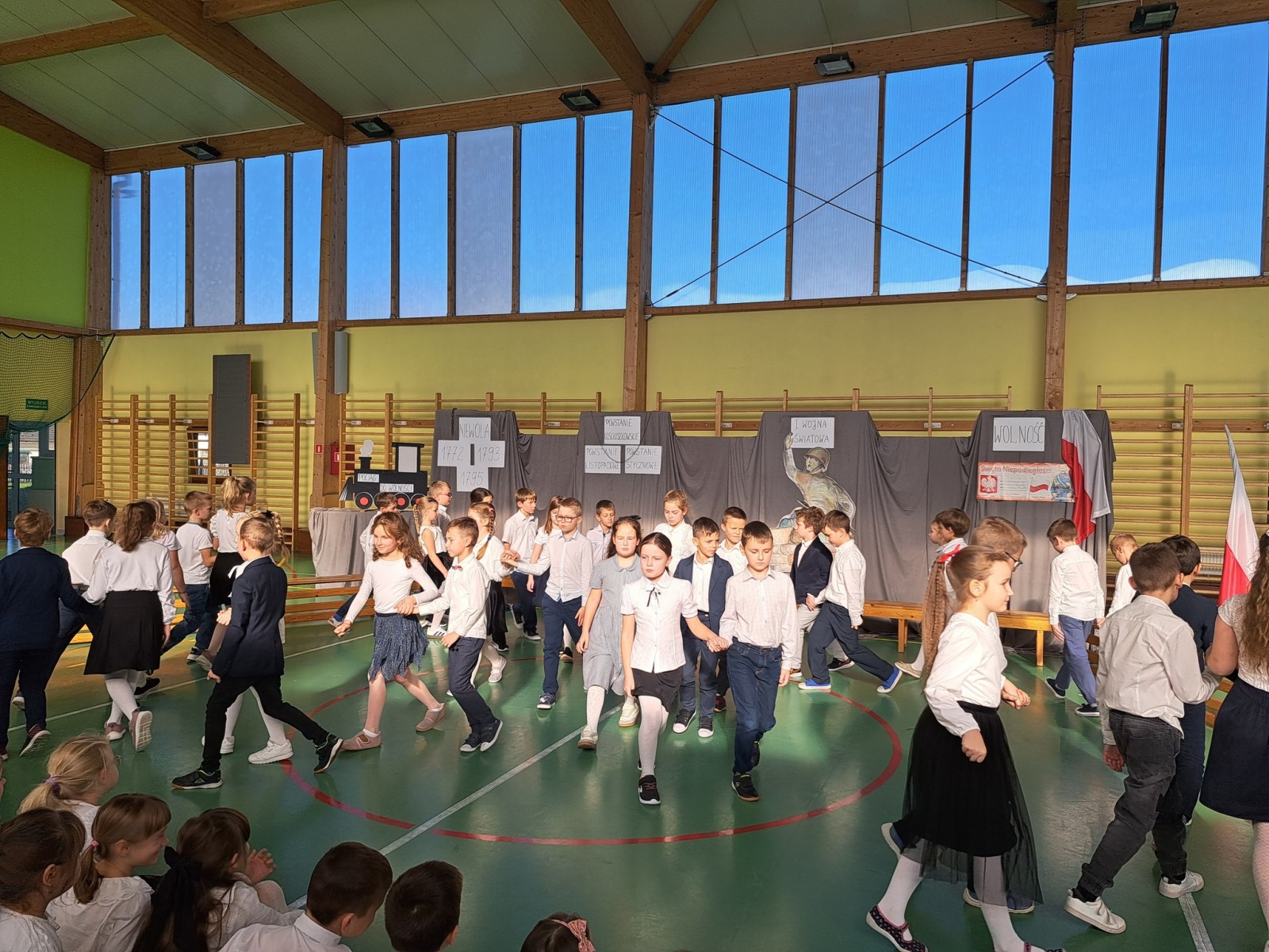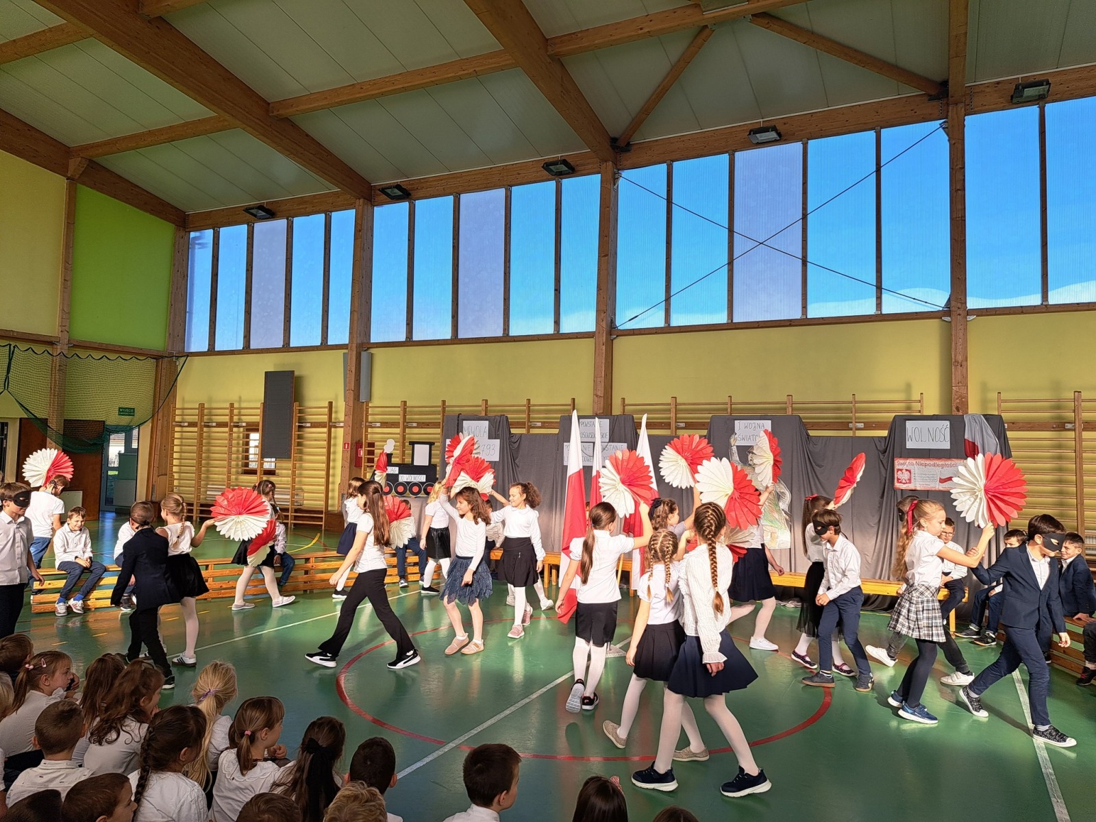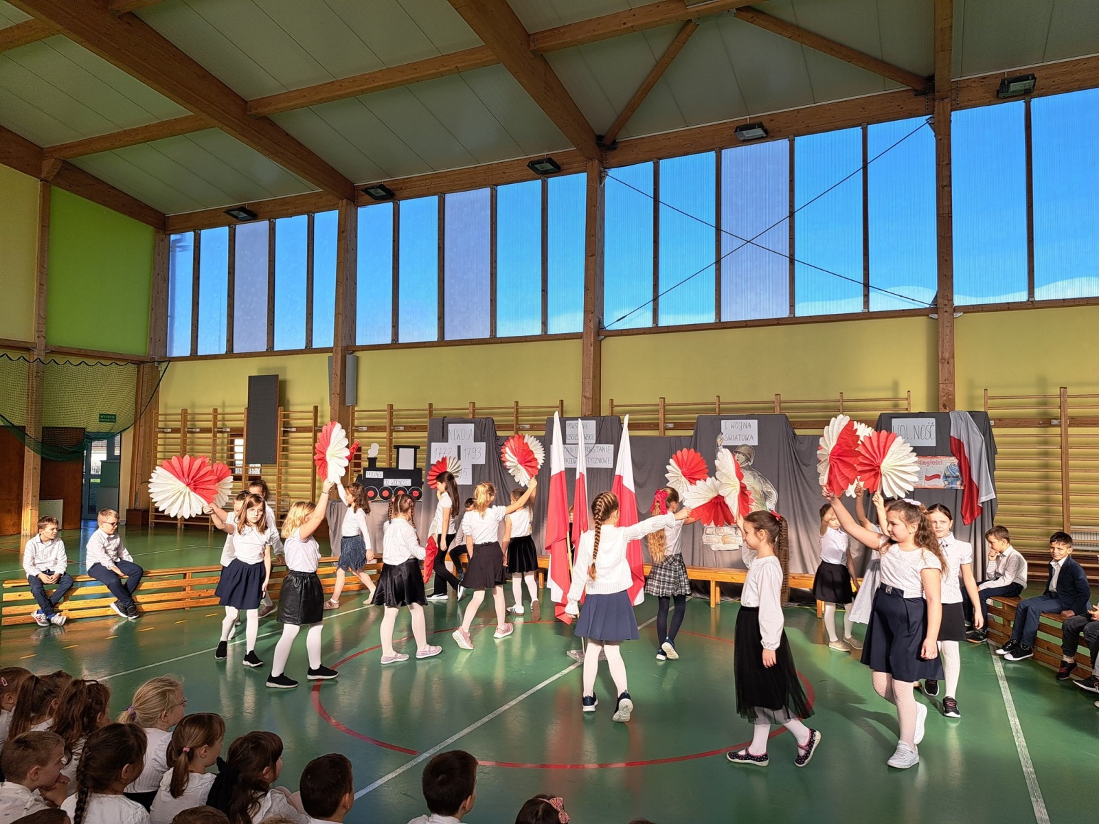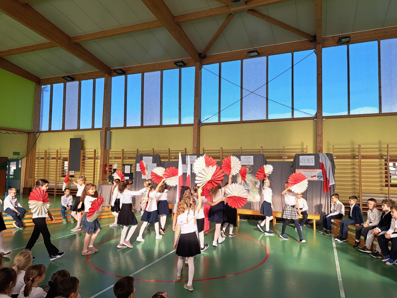 W tej części uroczystości można było zobaczyć taniec z biało – czerwonymi wachlarzami, który obrazował rozbiory Polski, wysłuchać pięknych recytacji przeplatanych pieśniami patriotycznymi takimi jak: „Warszawianka”, „Rota” i „Szara piechota”. Na zakończenie uczniowie klas drugich zatańczyli poloneza.