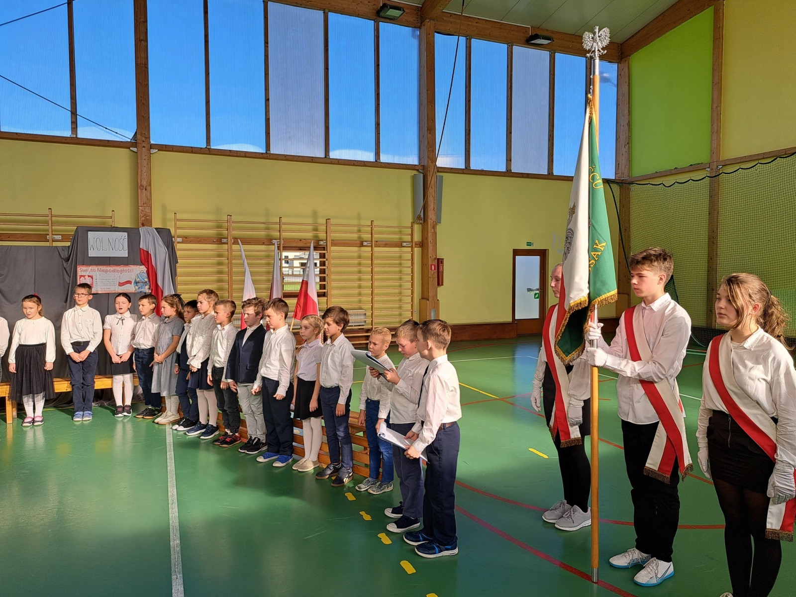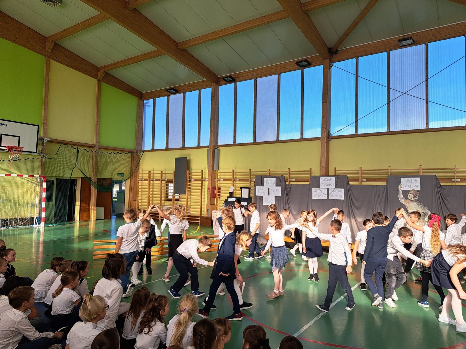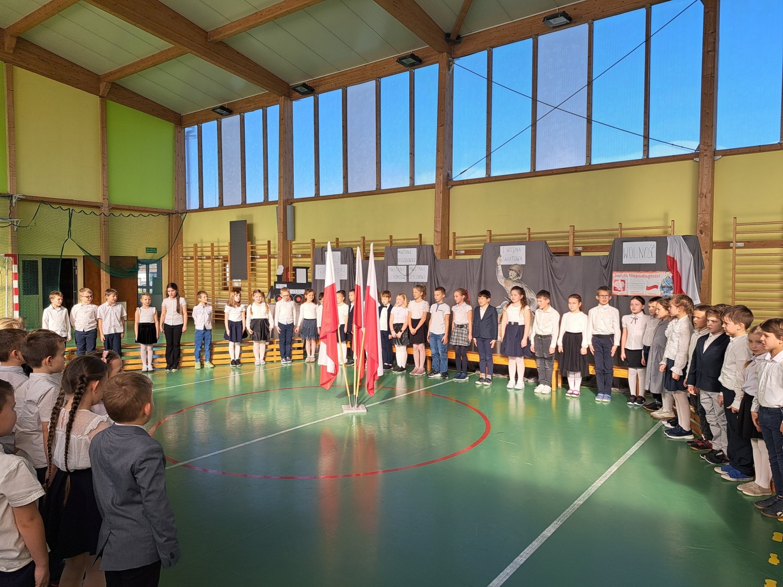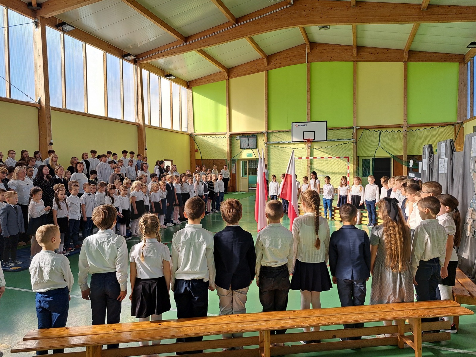 Podczas uroczystości cała społeczność szkolna zaśpiewała „Mazurek Dąbrowskiego” włączając się do ogólnopolskiej akcji MEN „Szkoła do hymnu” 2025.
